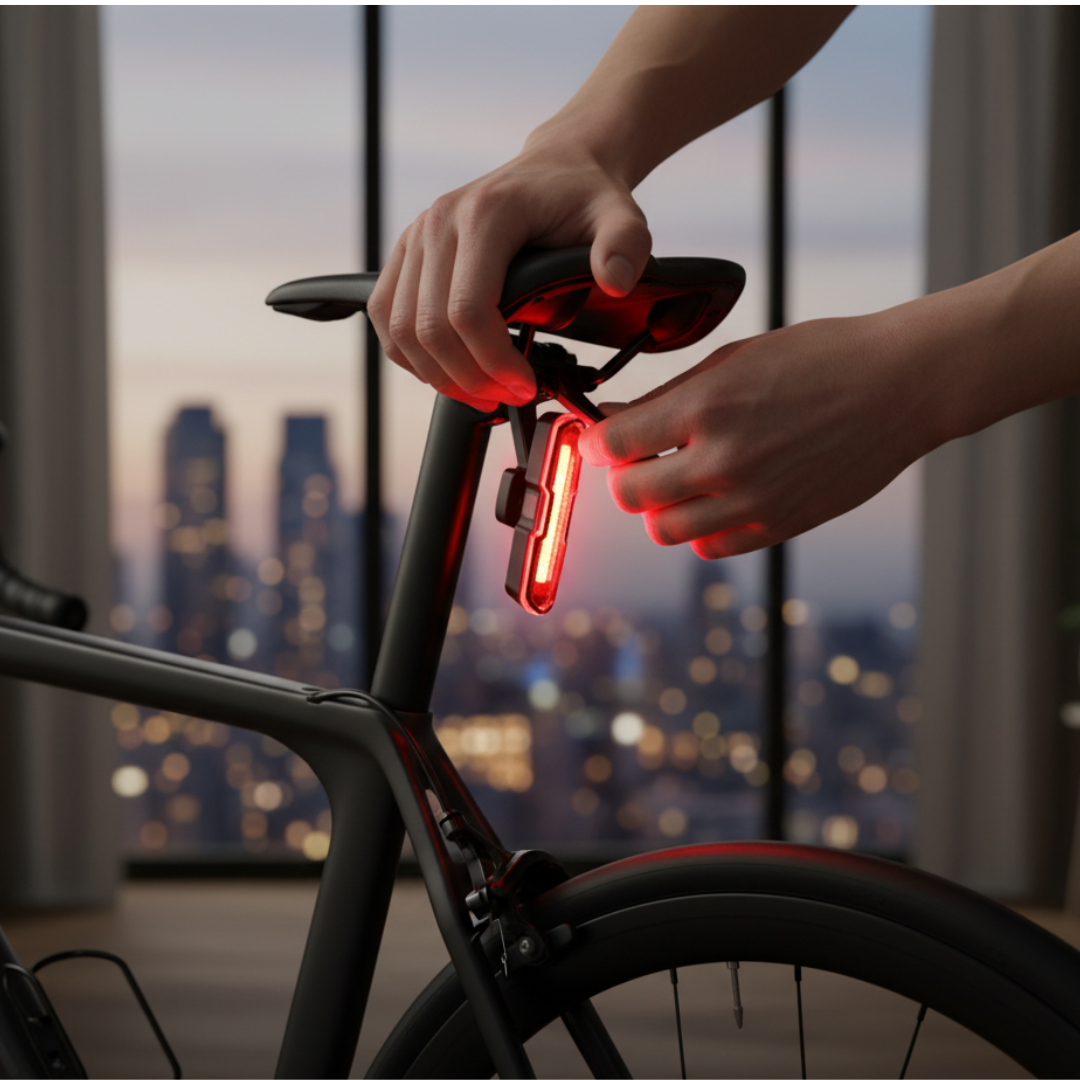 Astuce : pour maximiser la visibilité, oriente-le légèrement vers l’arrière et assure-toi qu’il n’est pas obstrué par des sacoches ou éléments du vélo.